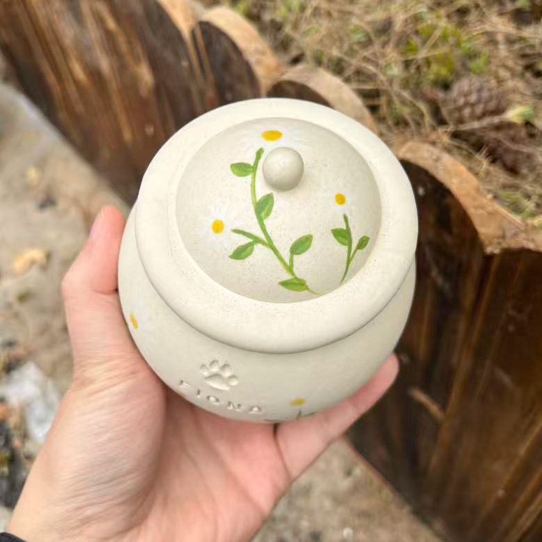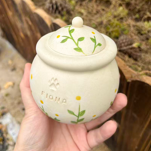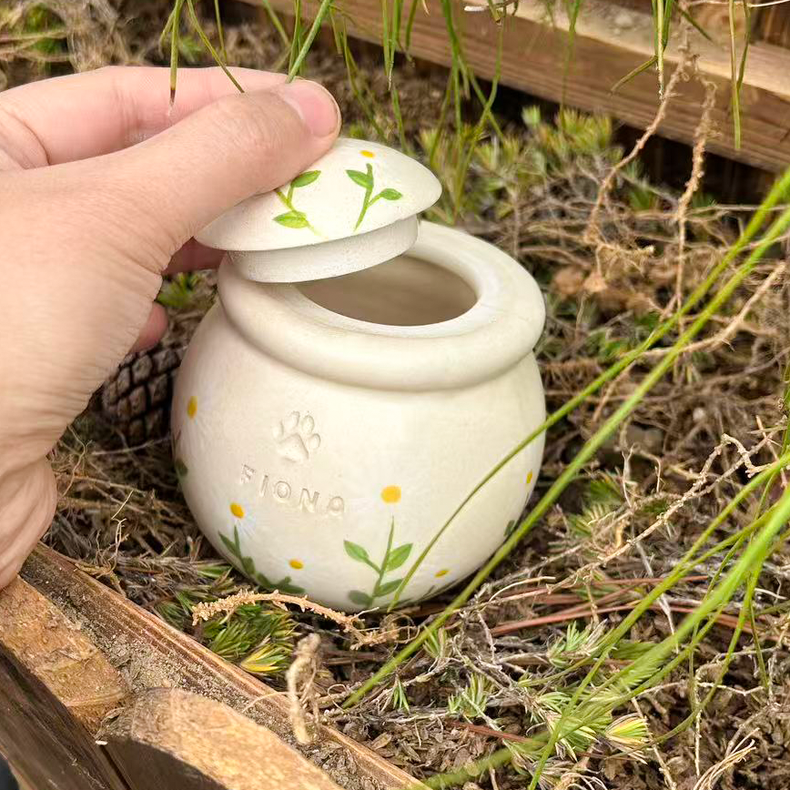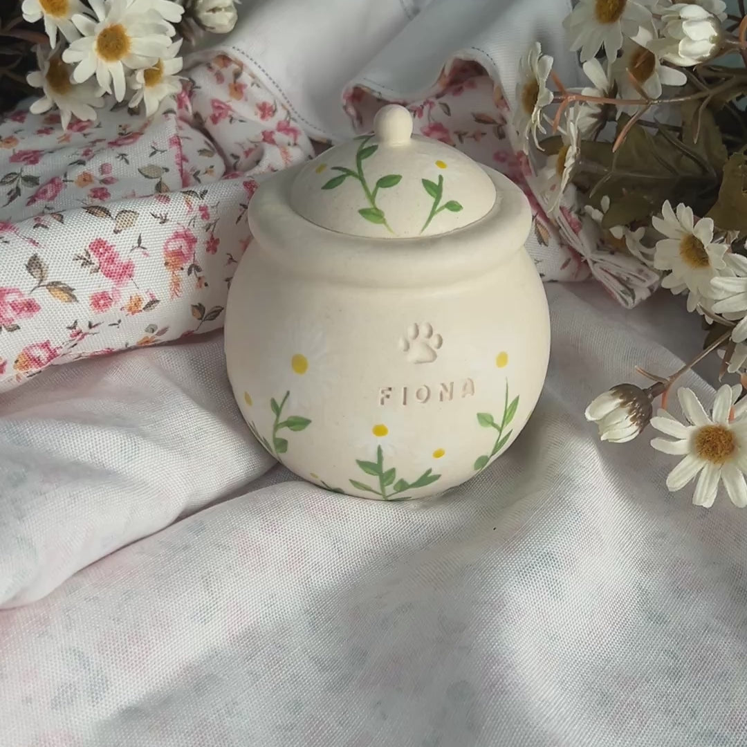 Custom Handmade Ceramic Pet Pottery Urn, Personalized Daisy Dog Urn, Cat Urn