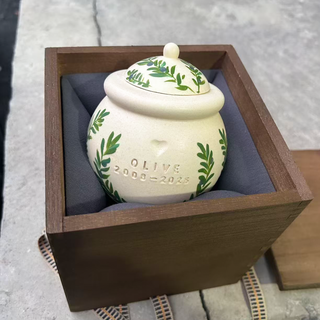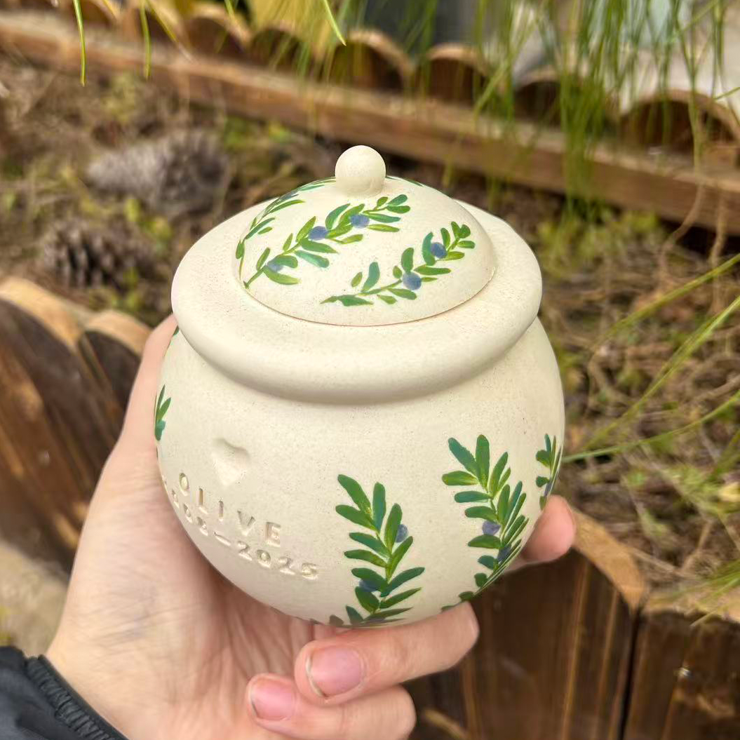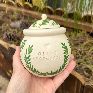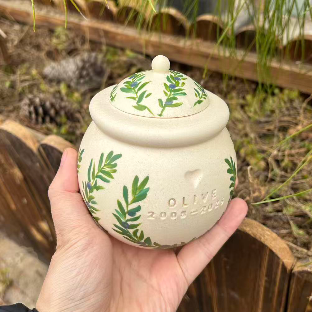 Custom Handmade Ceramic Pet Pottery Urn, Personalized Olive branch Dog Urn,Cat Urn