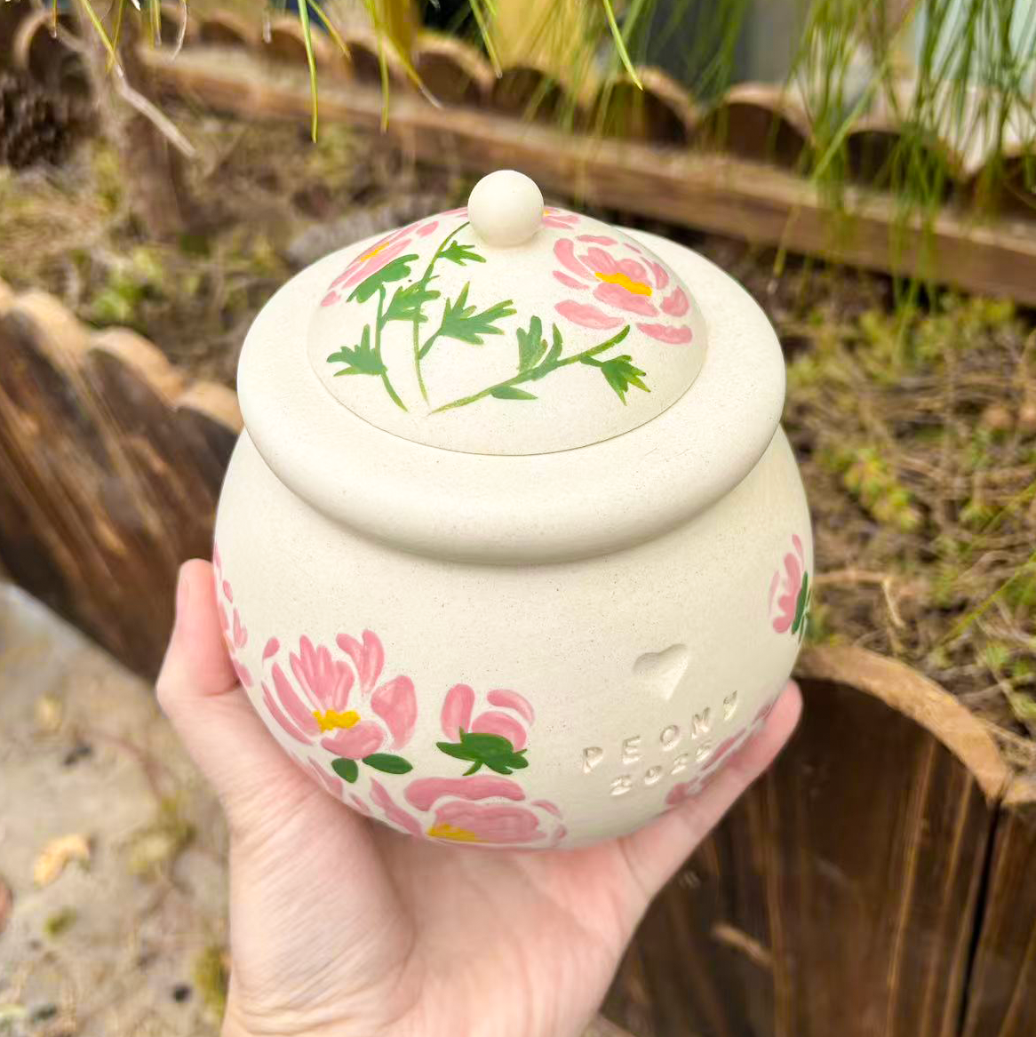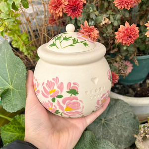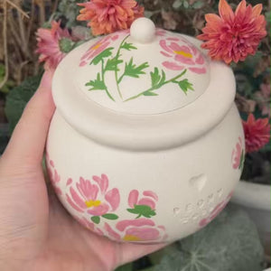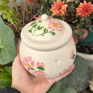 Custom Handmade Ceramic Pet Pottery Urn, Personalized November Peony Floral Dog Urn,Cat Urn