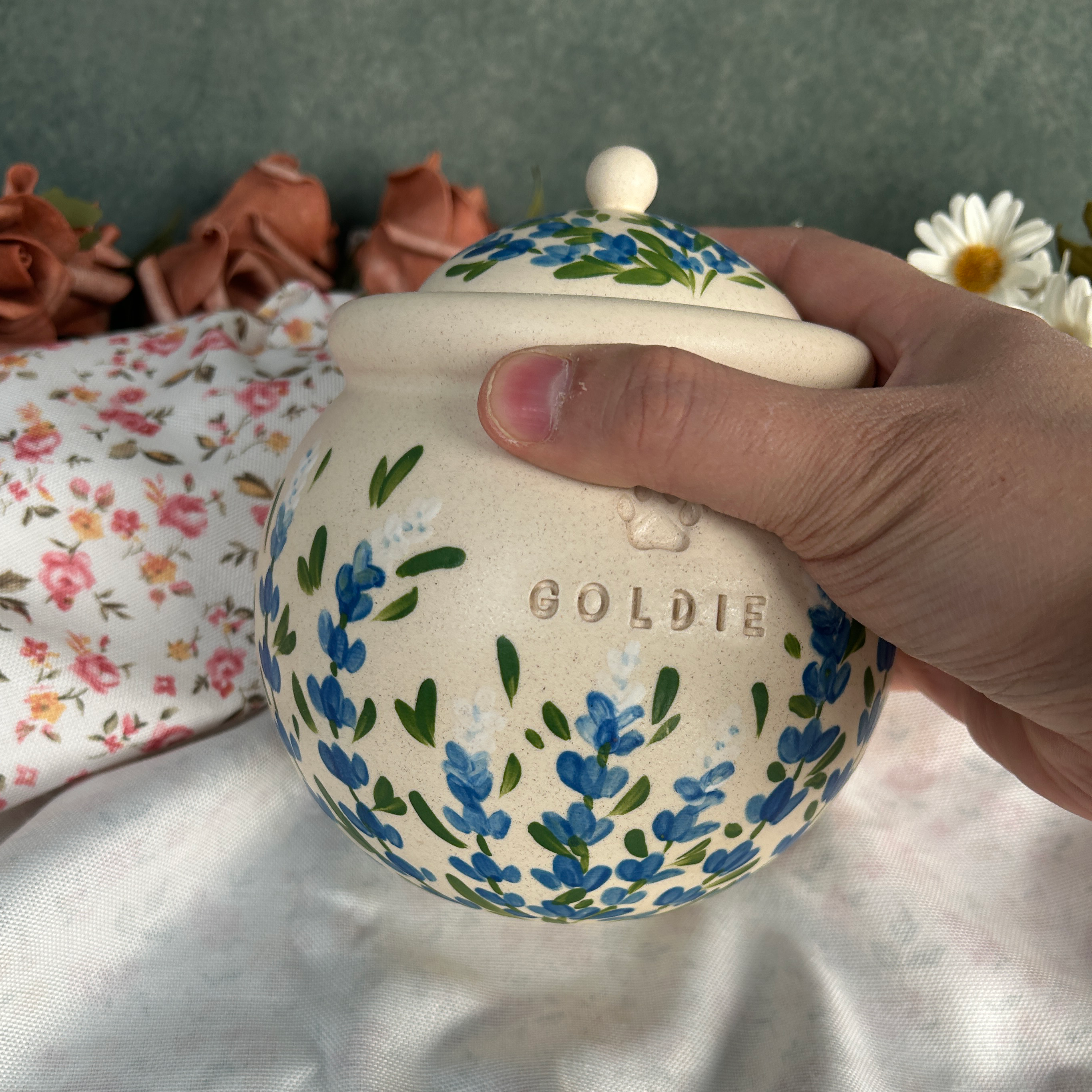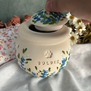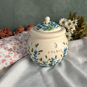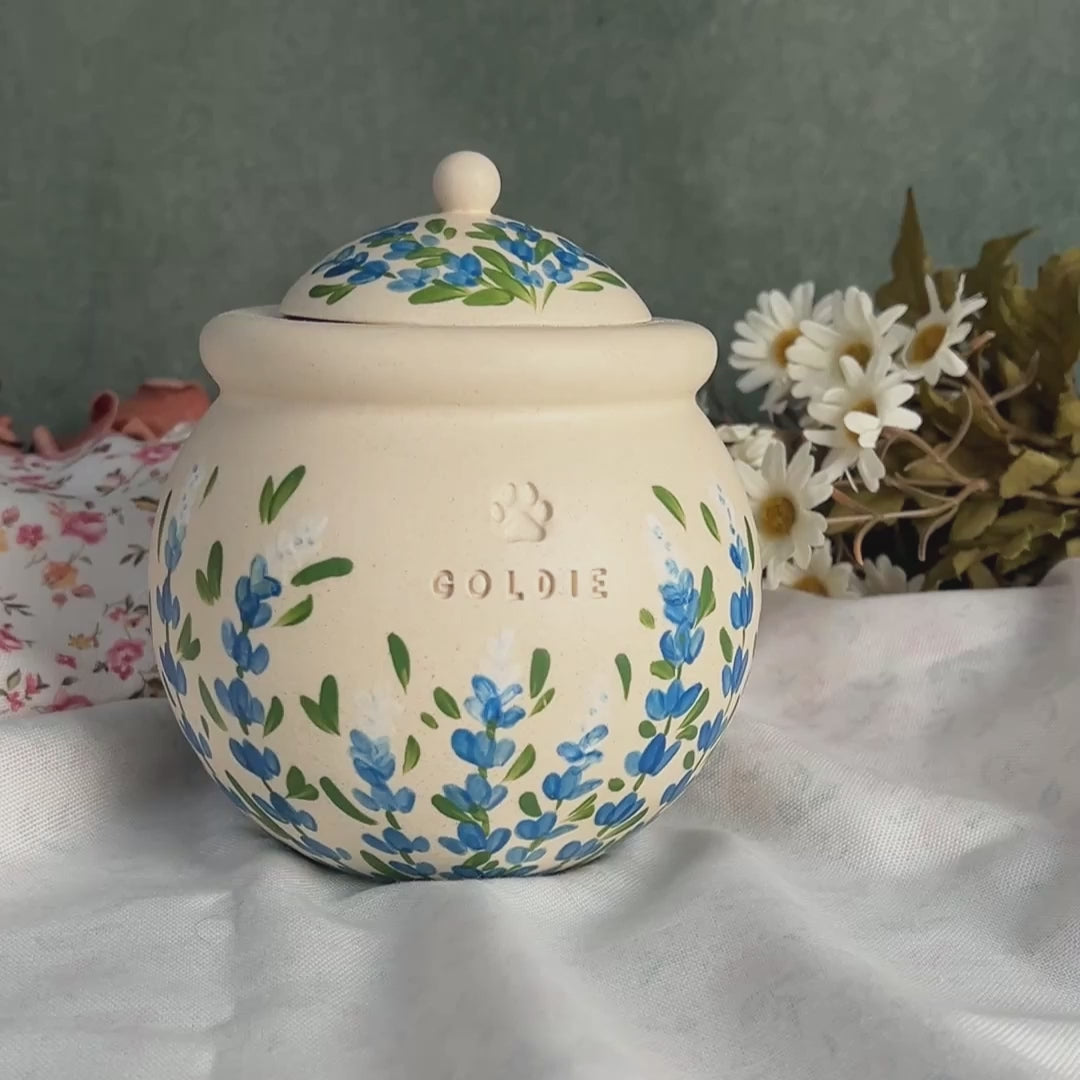 Custom Handmade Ceramic Pet Pottery Urn, Personalized Bluebonnets Dog Urn, Cat Urn